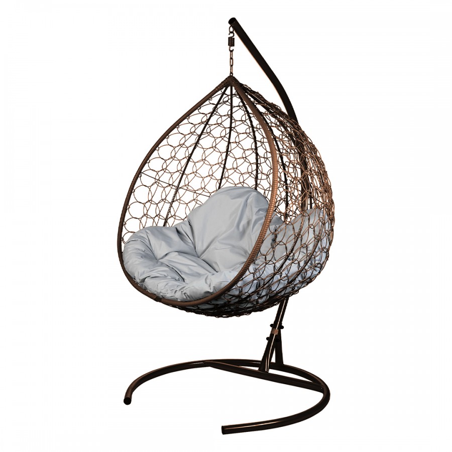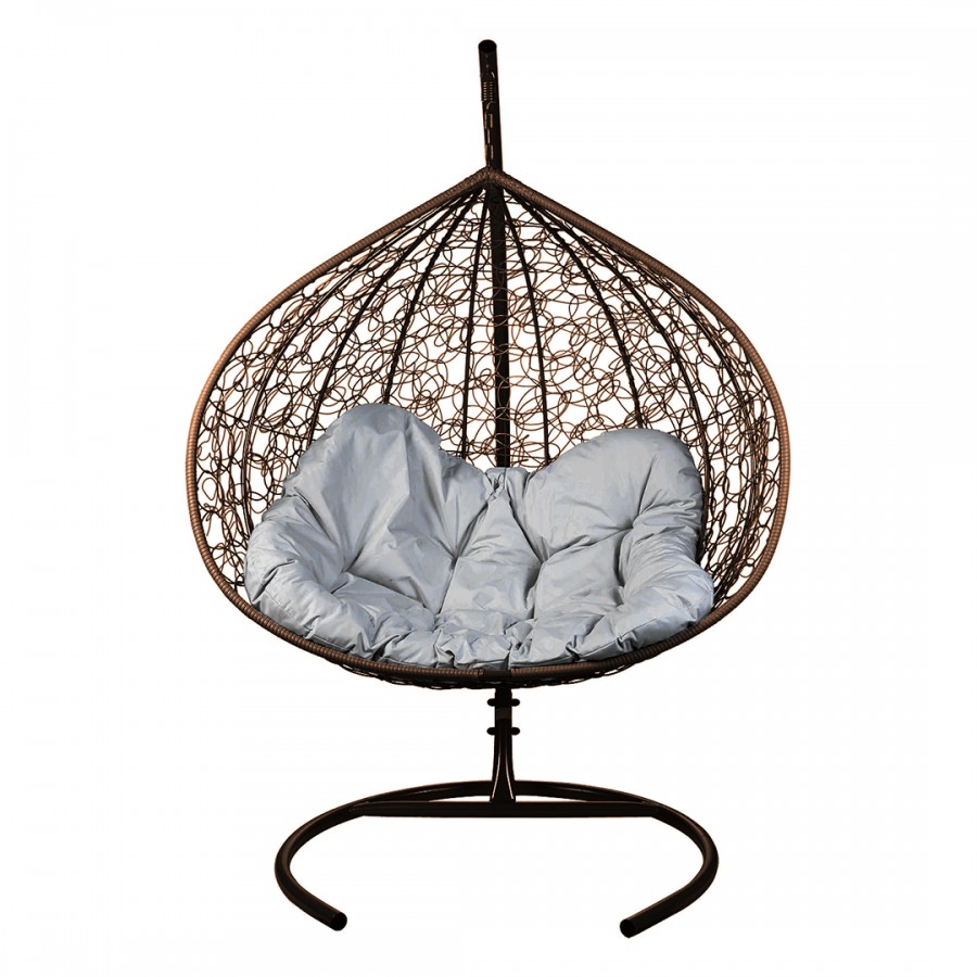 Двойное подвесное кресло "Gemini" promo brown с серой подушкой