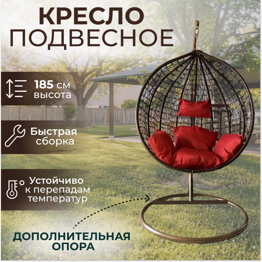 Подвесное кресло "Crocket Brown" - красная подушка